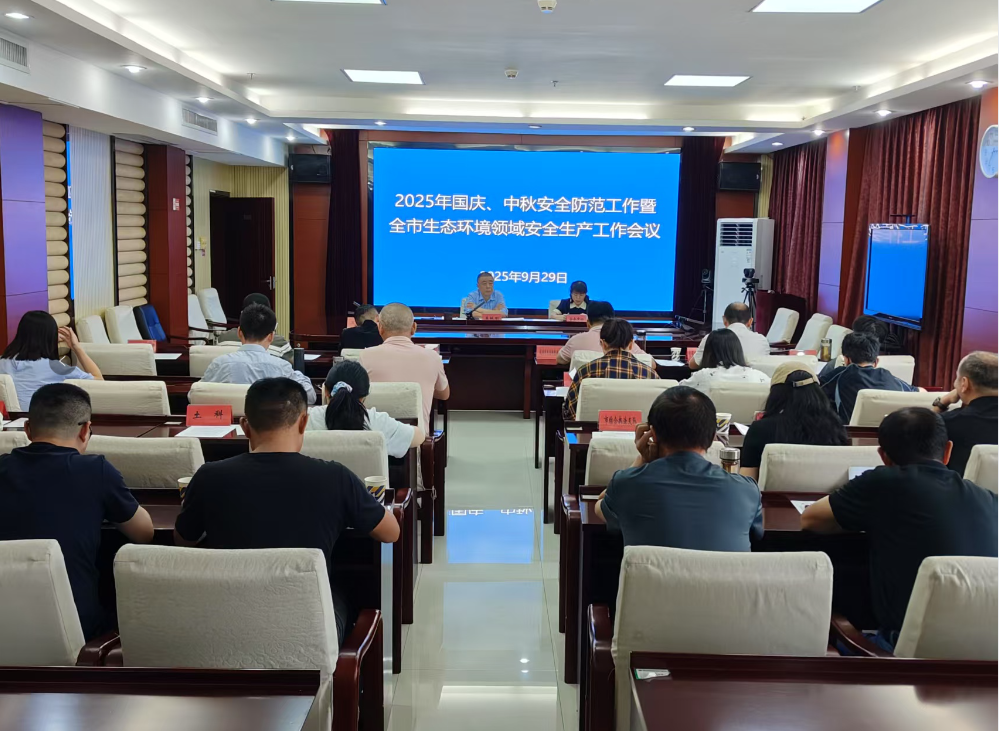 9月29日,市生态环境局组织召开2025年国庆、中秋安全防范工作暨全市生态环境领域安全生产工作会。局机关各科室(单位),县(市、区)生态环境分局有关负责同志参加会议。