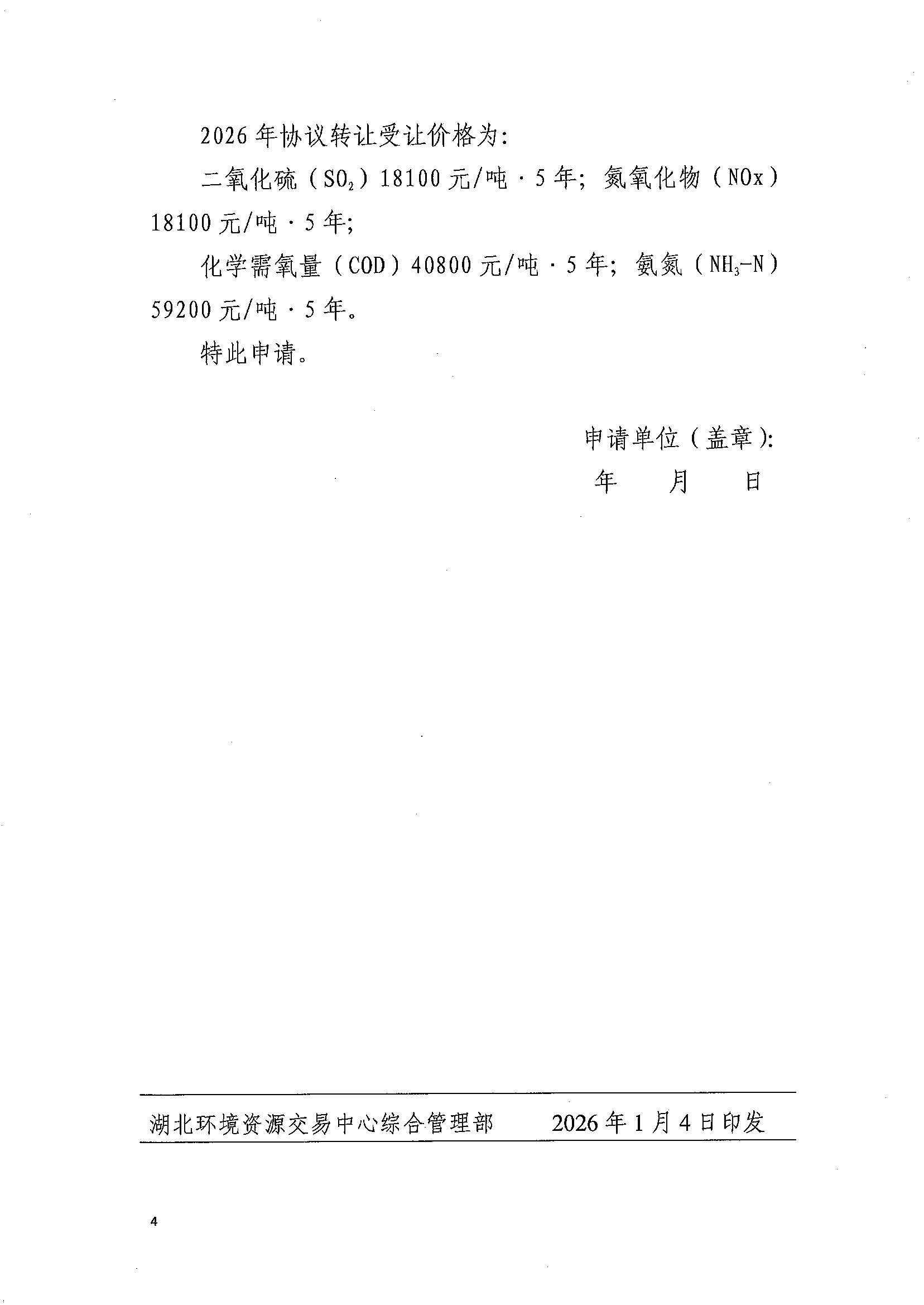 名       称: 关于湖北省主要污染物排污权2026年度协议转让价格的公告 发布日期: 2026年01月05日